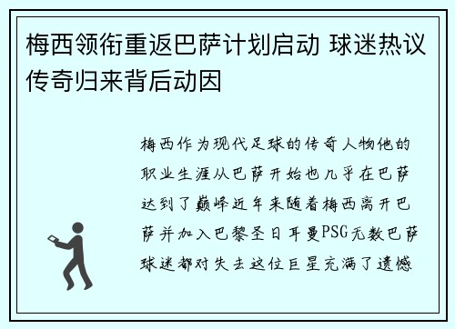 文章摘要:某球员因禁赛处罚错失了即将举行的重要比赛,这一事件引发了广泛的讨论和热议。禁赛处罚本应是体育竞技中对不当行为的必要约束,但在一些情况下,禁赛的判定和执行也可能会对赛事的公正性、观众的期望、以及参赛队伍的整体竞争力产生影响。这一事件不仅涉及到该球员个人的损失,更从宏观上对赛事公正性和规则执行...